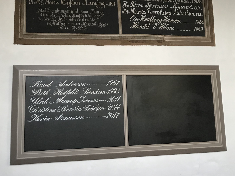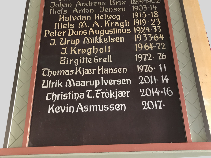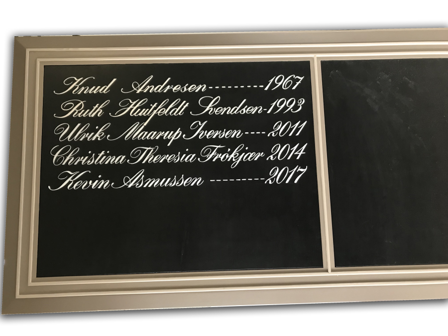 Ring eller mail og lad os lave en aftale om at få opdateret jeres præstetavle med det aktuelle navn og årstal. I kan selv levere den på vores adresse, eller vi kan hente og levere den når den er færdig.