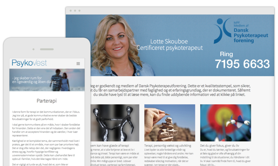 I dag bruger de fleste internettet til at søge efter services og produkter, så hvis du gerne vil i kontakt med dine kunder, skal du være synlig på nettet. Det er vigtigt, at din hjemmeside er optimeret til både søgemaskiner samt visning på mobiltelefoner og tablets, og så skal den være nem at redigere, så du selv kan vedligeholde den med så lidt tid som muligt.